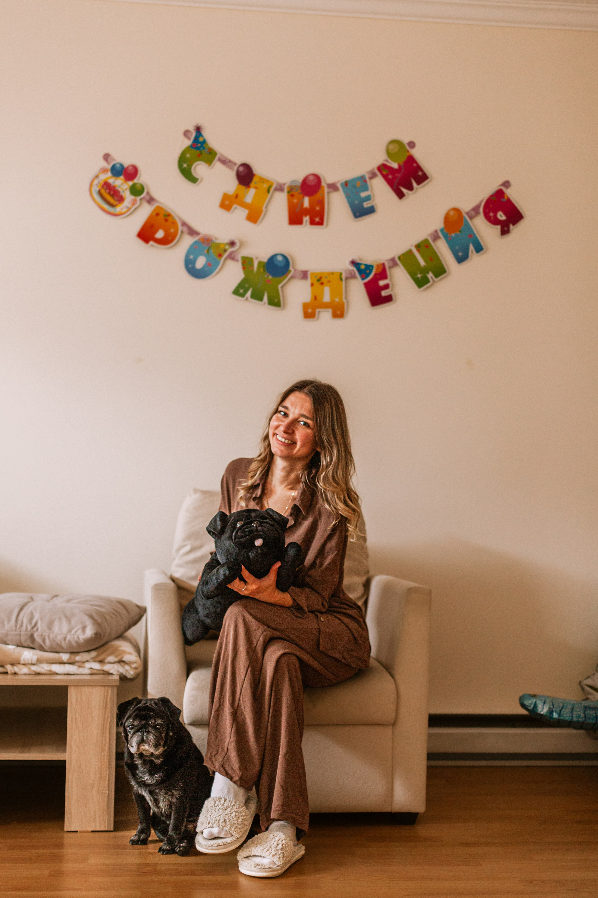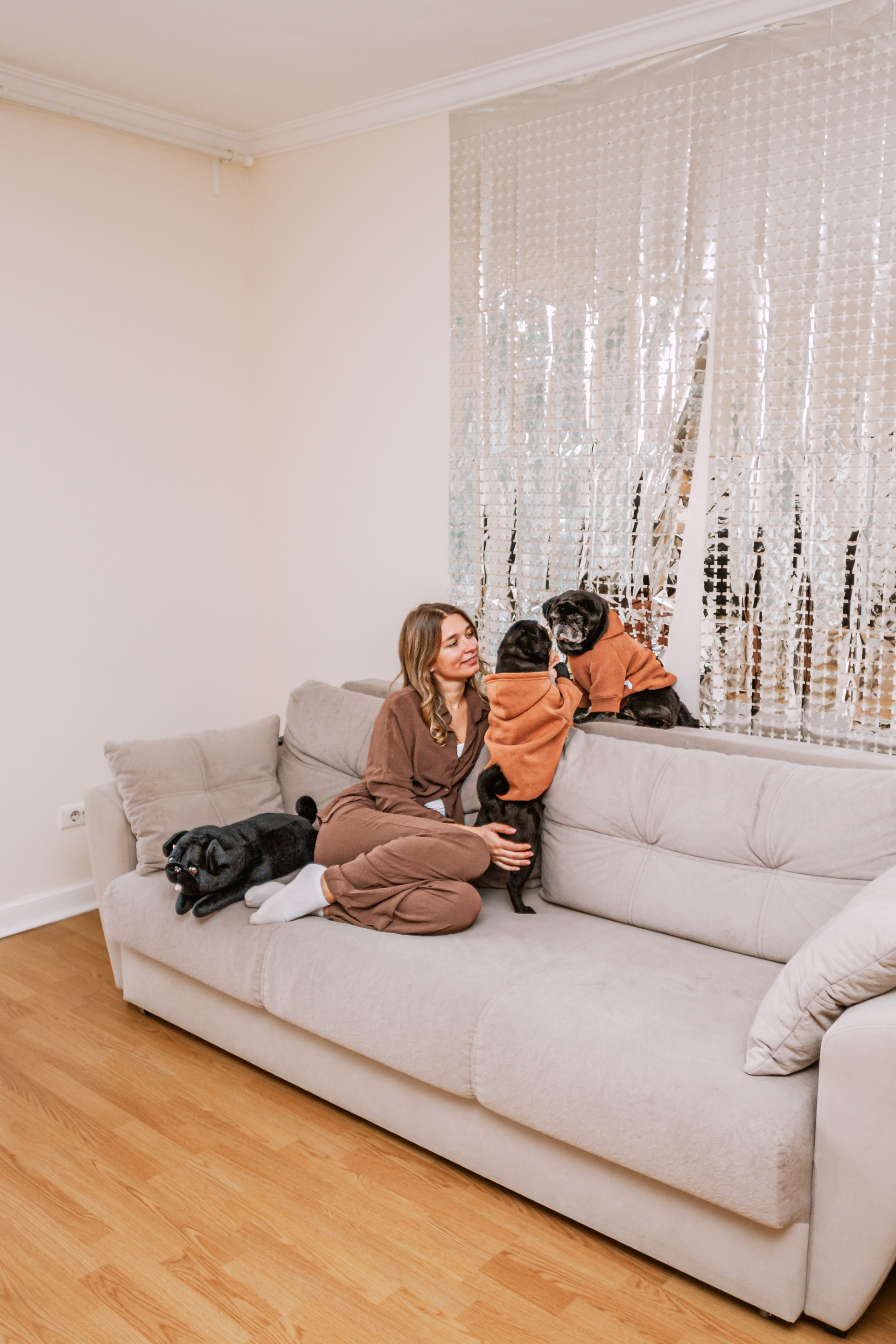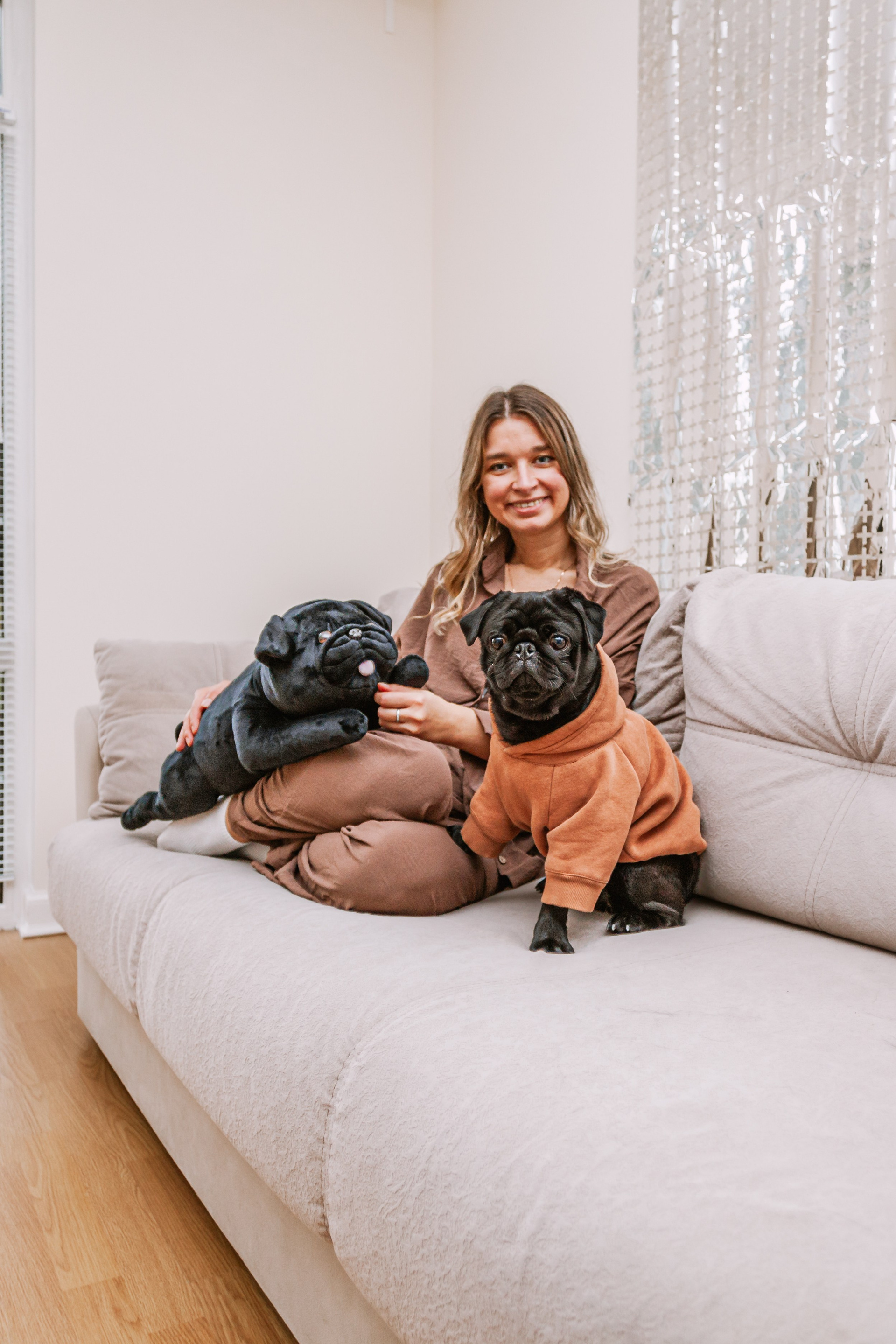 Домашняя фотосессия Оли и двух ее мопсов
