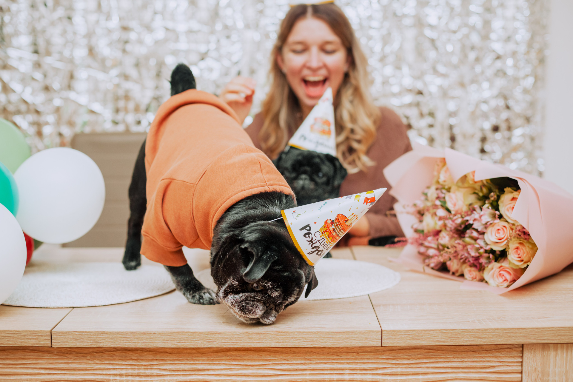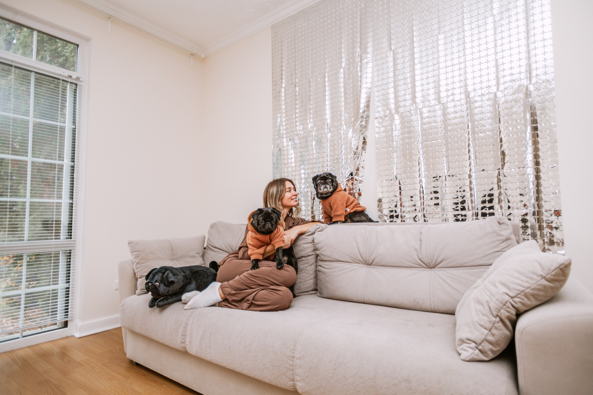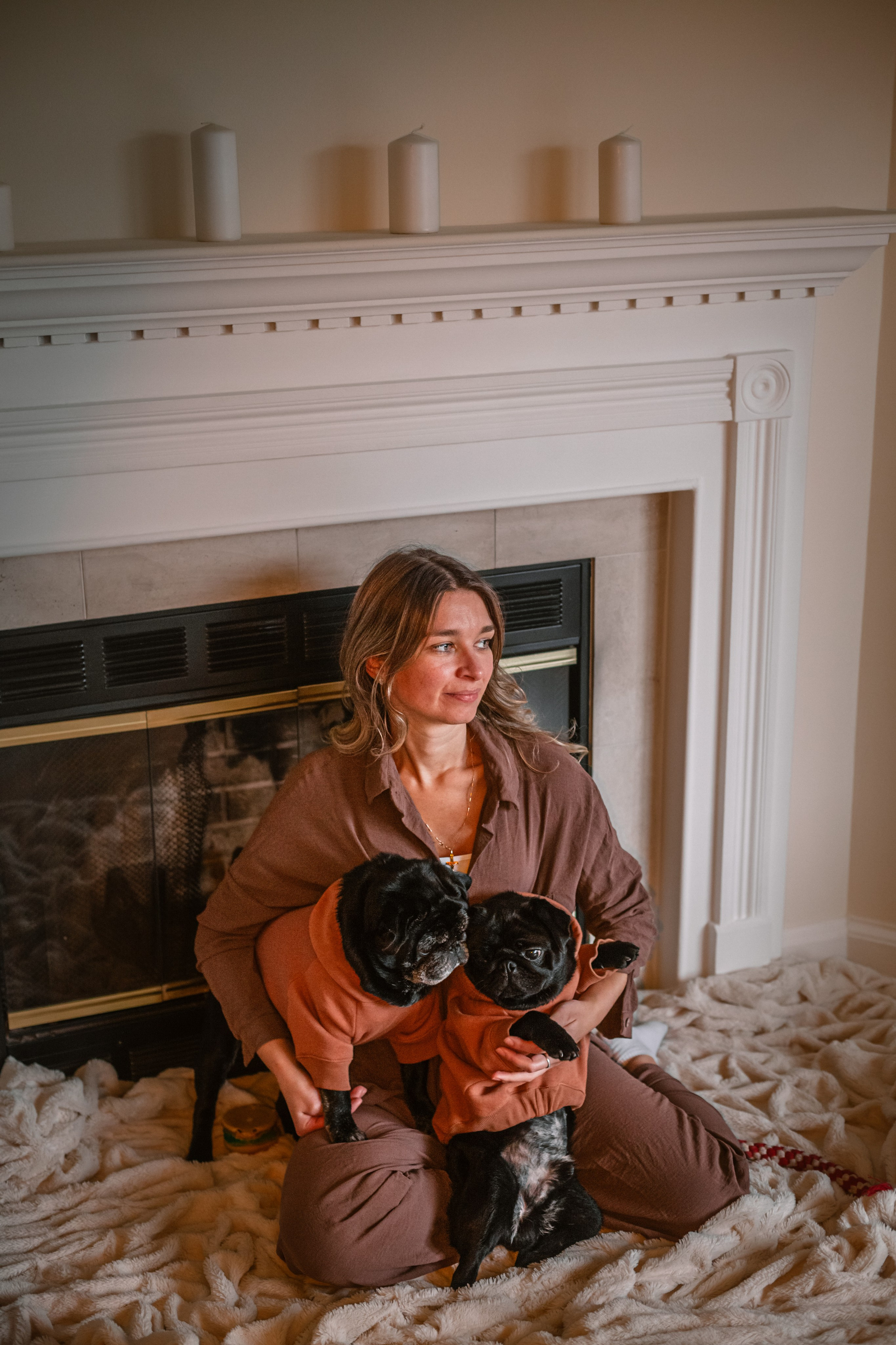 Домашняя фотосессия Оли и двух ее мопсов