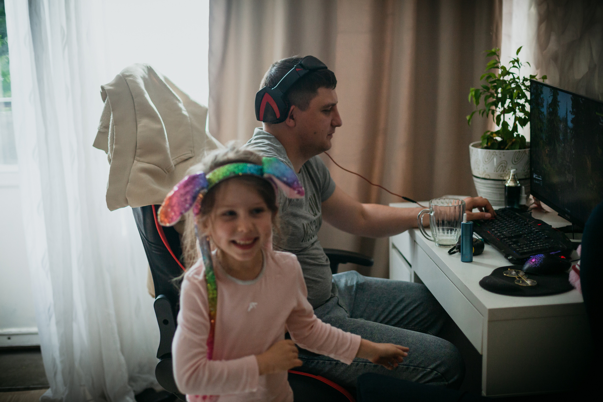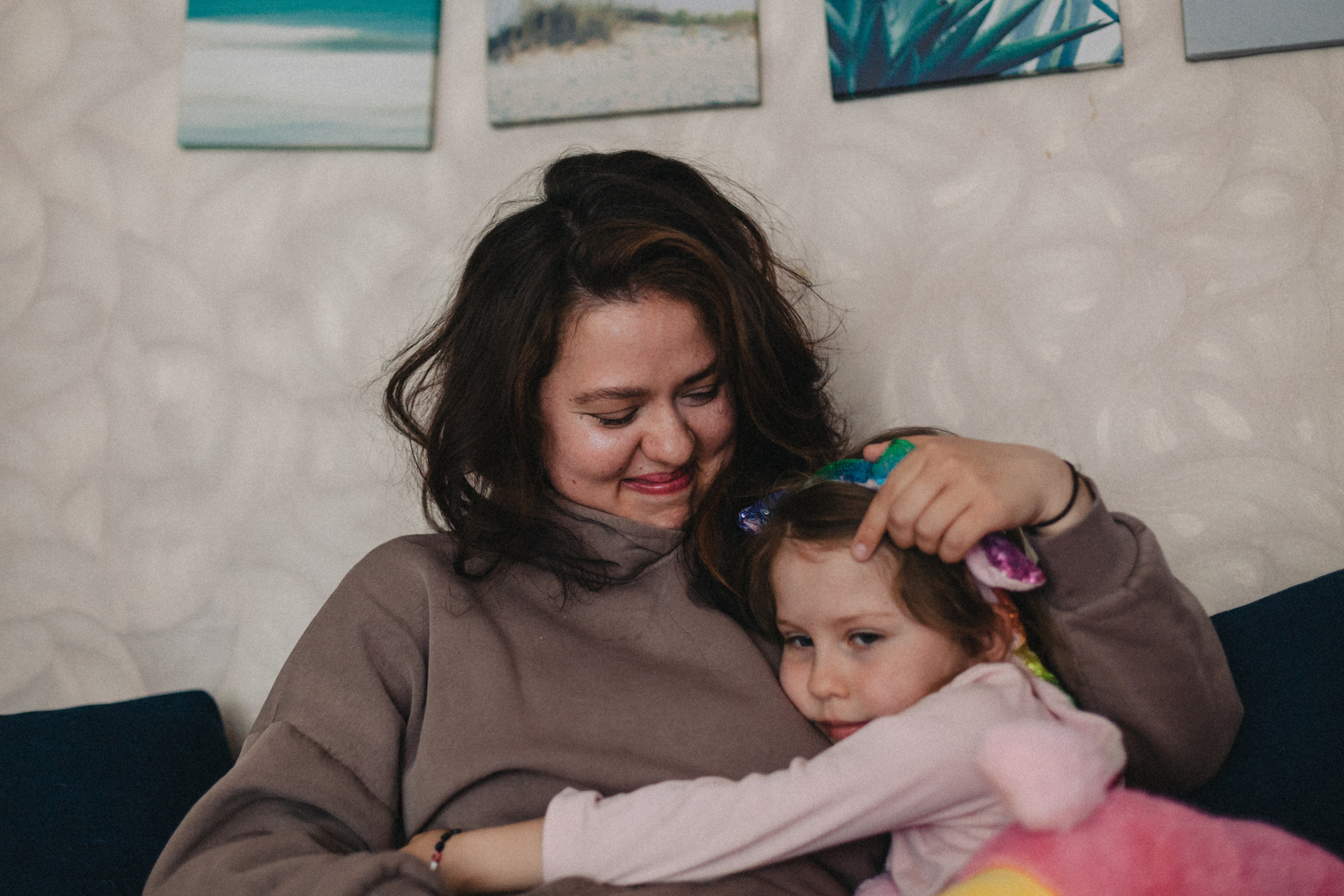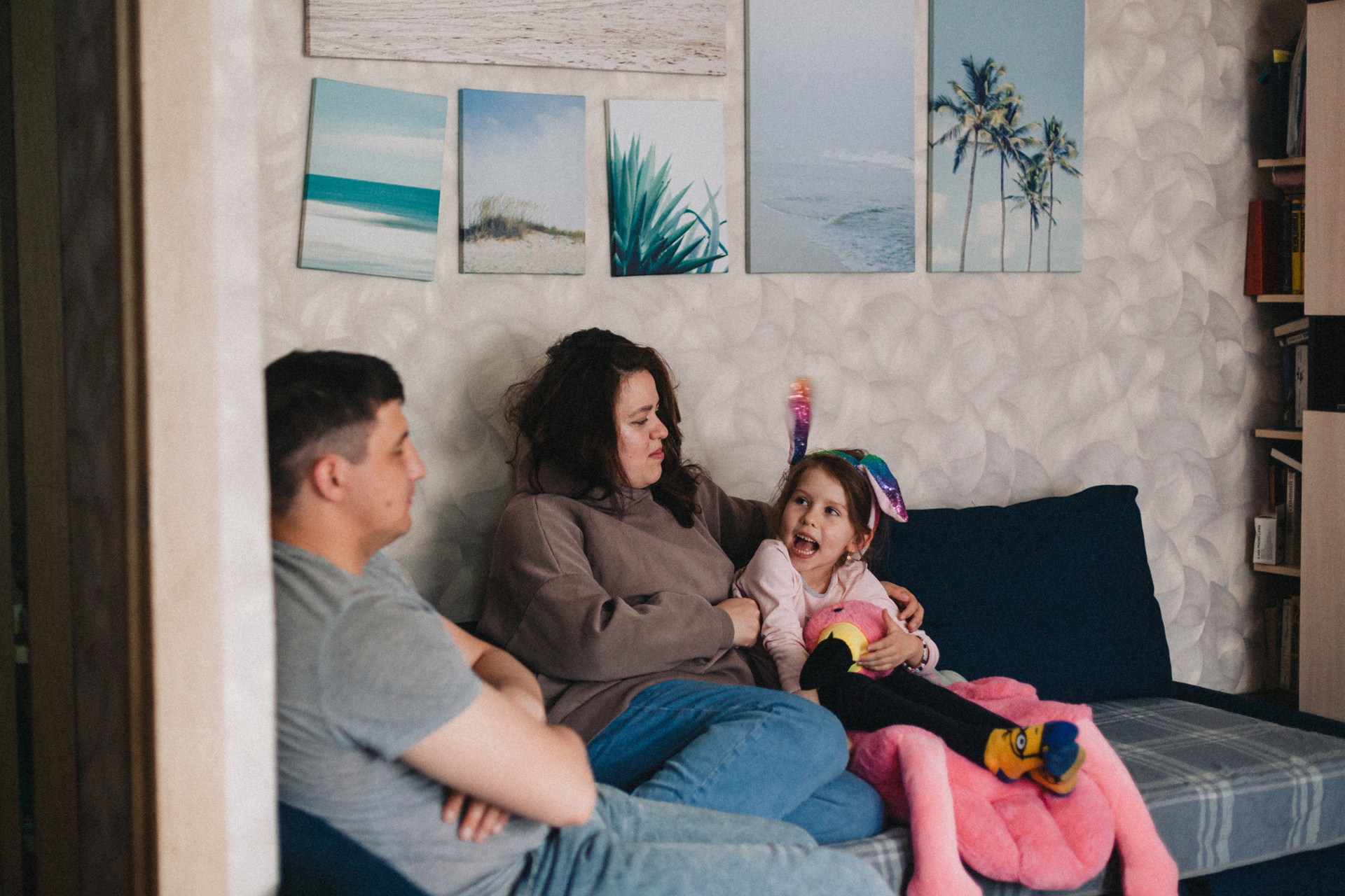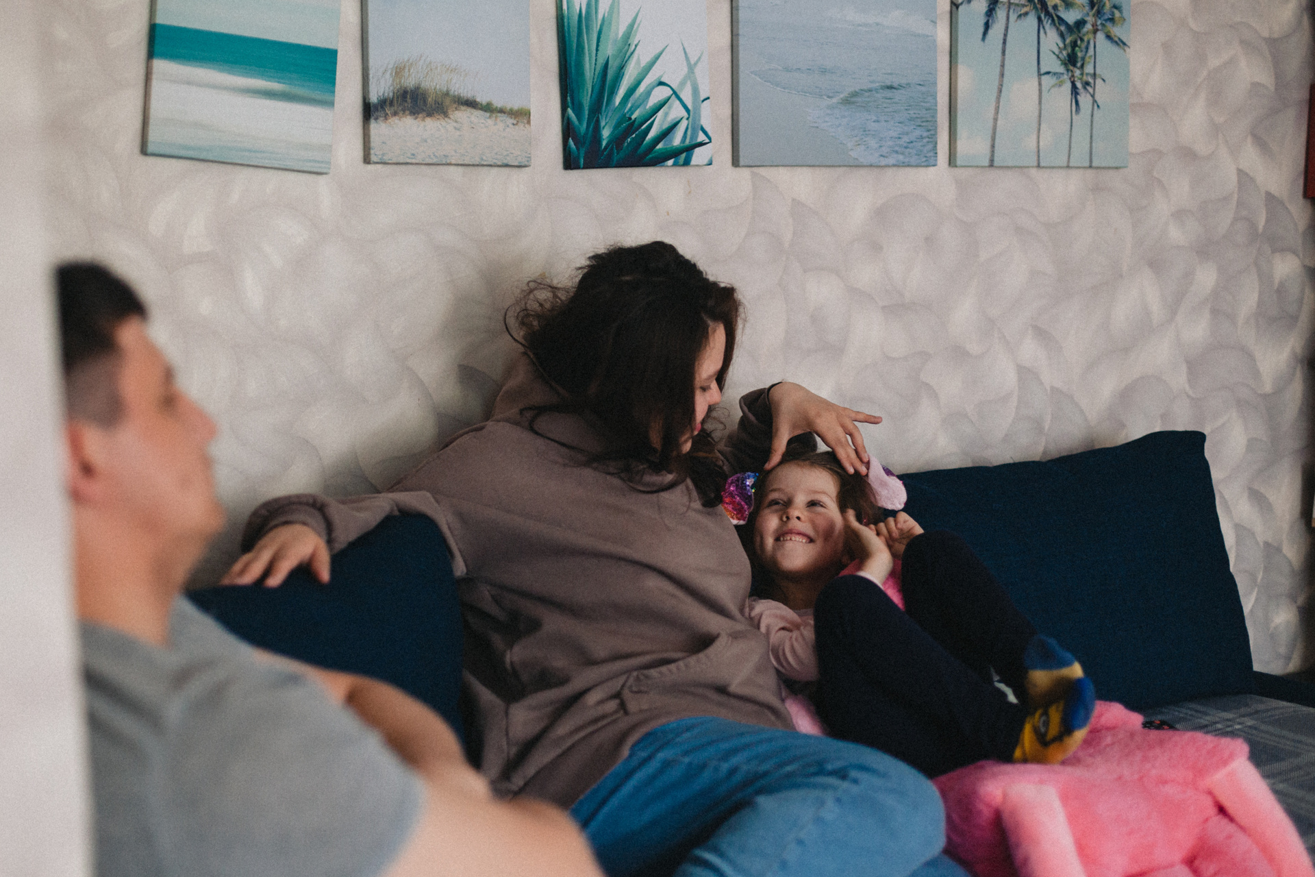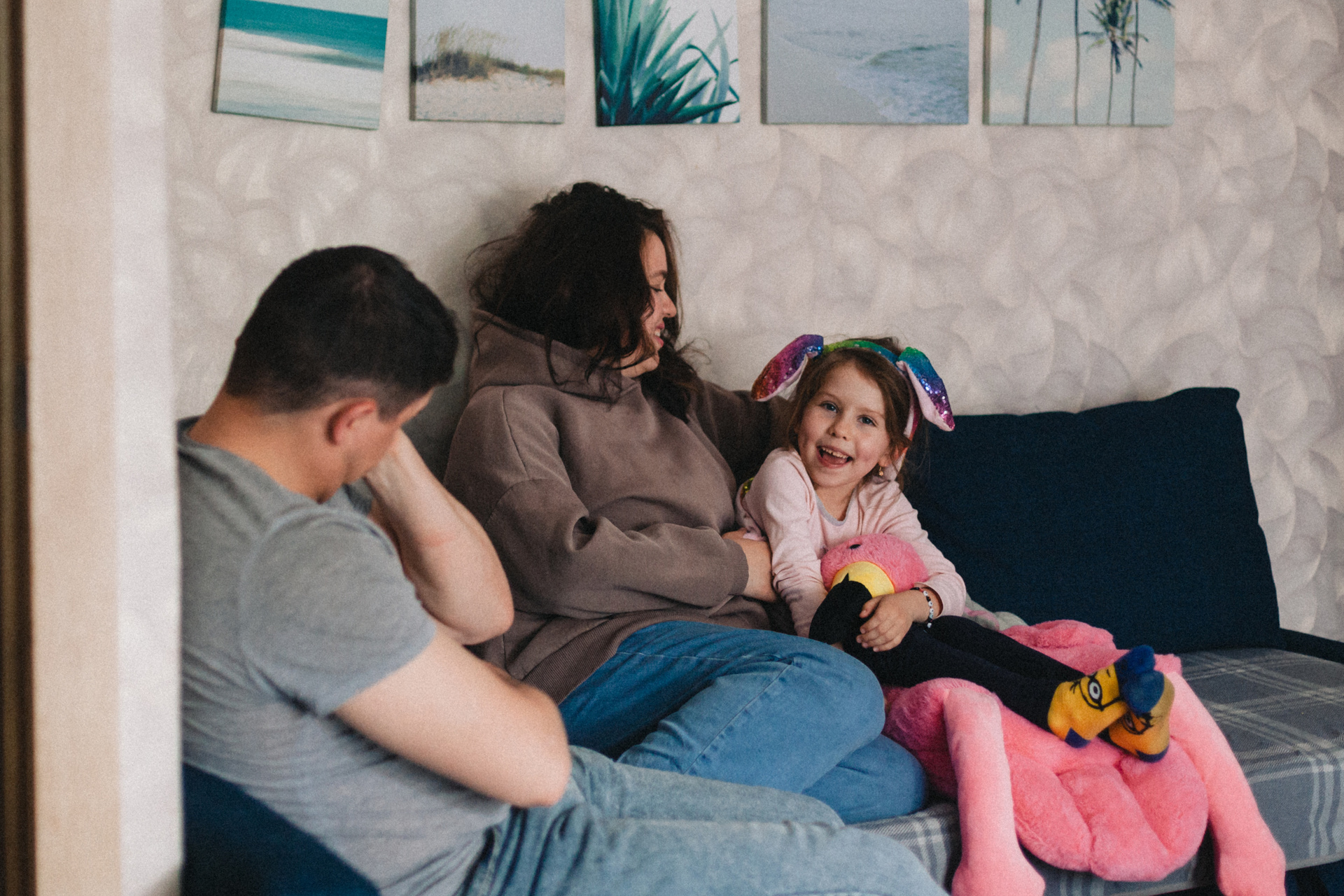 Очень милая и естественная домашняя экспресс-фотосессия моей подруги и ее семьи. На фотографиях все получились очень настроящими. Даже муж Игорь, который устал после рабочих дней и совсем не хотел сниматься, но сделал несколько кадров ради жены и дочки. Съемка заняла буквально минут 15. Быстрая обработка в Лайтрум, без ретуши